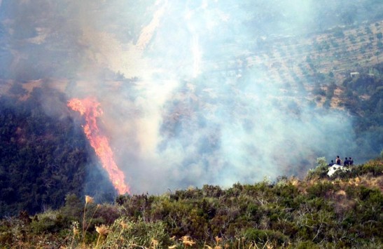 Κύριο μέλημά τους είναι, να προστατεύσουν τους οικισμούς ενώ οι φλόγες αποτεφρώνουν καλλιέργειες με ελιές και δασική βλάστηση...